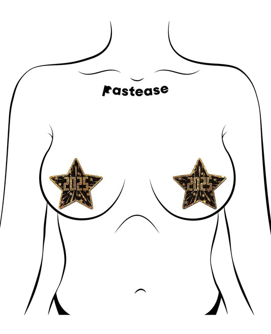 Pastease 2025 Happy New Year Star Nipple Covers - Black/Gold O/S