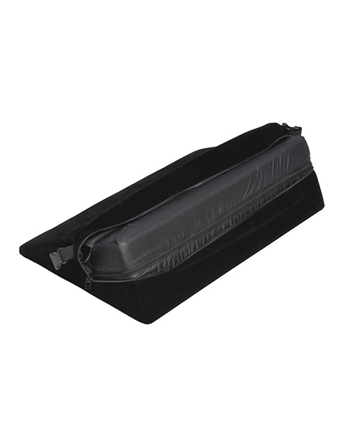 This velvet, black wedge goes great with any dark or neutral color decor, can be placed on your bed behind other pillows and used as support when you're sitting up, and is one of the simple yet essential pieces of your sexy bedroom collection! Use the pillow under your hips to tilt your pelvis and get greater access to hitting your G-spot or P-spot. Use it under your head for comfort and to lift the neck. Pad your knees as you pound your partner in Doggy style pose! Get on your side and use it between your shins or thighs to easily part your legs as your partner slips in behind you! At any time you can add cuffs or kinky bondage accessories to make it more interesting! Get fun and creative as you enjoy leveling up your love game!