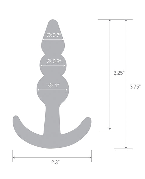 The beaded design of this beginners-friendly plug enhances the sensation as it is inserted and removed from the body. With this entry-level size, this plug features a smooth tapered tip that allows for easy insertion and a flared base for safety. The three beads are perfect for first timers who can work their way up to inserting the entire plug. Made of body-safe, seamless material, this plug is easy to clean and is easy to store and travel-friendly.