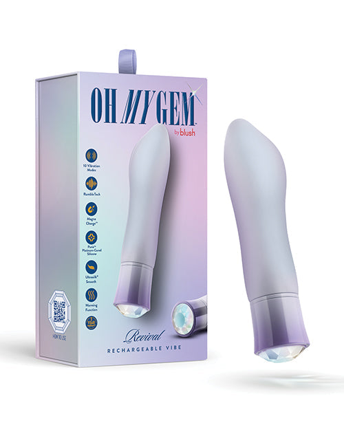Opal represents confidence and a new start. You hope to always better yourself and embrace your own pleasure and satisfaction in everything you do. Versatile and pleasurable, it's the perfect way to indulge your senses. It's time for your Revival! Warms to up to a very comfortable 107 degrees Fahrenheit for increased blood flow and enhanced pleasure. Made from our pure platinum-cured Puria silicone and enveloped with our satin smooth UltraSilk® this fierce vibrator offers a smooth and comfortable experience for all users. Water based, hybrid lube compatible. Oh My Gems are hypoallergenic and body safe!