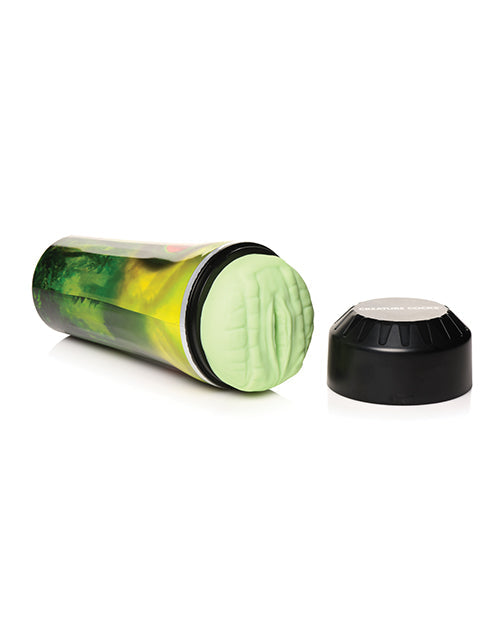 Your sexy dreams of serpents, lizards, dinosaurs or dragons are about to become more realistic! This stroker has soft green color and reptile skin with a small slit for an opening. Inside the stroker are rows of textured ribs, grooves and nubs to drive you crazy as you dip yourself inside and enjoy pumping into the tight hole. Control the pressure and suction by using the silicone plug at the base of the case. Keep it in and each pump will add a little pressure and suction for a tighter squeeze! Remove the plug to release it. The case is open ended once the plug is removed so that you can easily rinse and let the water run through it. For an even more thorough clean up process, remove the stroker sleeve and wash it separately before letting it air dry. Place the cap on top once the sleeve is reinserted to keep it free of dust and debris. Use only with water-based lubricants. Enjoy indulging in your kinky fantasies of sci-fi or horror as you give into your dark desires!