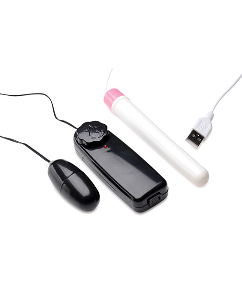 Accessories included: Vibrating bullet,heating wand, handling gloves, extra toenail set with glue, and lubricant/cleaning reusable enema