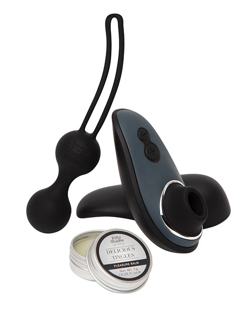 Pack your bags for your most sensual weekend getaway yet. Get yourself acquainted with this three-piece kit that's all ready to amplify your erotic adventures. Delight in the tingling orgasm balm, the smooth Kegel balls, and the sweet sucking sensation of a custom-color Womanizer Liberty.