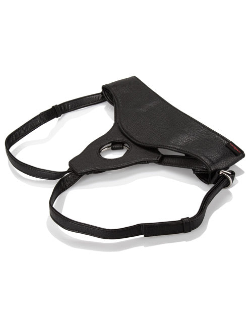 Prepare yourself for thrilling pleasure and premium probe play truly fit for royalty with The Queen. Her Royal Harness' luxurious harness is made for a performance and comfort with lower back support strap, adjustable fit and sturdy reinforced stitching. The sleek crotchless design appeals to even the most dominant with the discreet snaps made to accommodate any size probe ring. The double-layer vegan leather and adjustable thigh and waist straps give you the ultimate control over comfort.Surrender yourself to your most carnal fantasies and dive deep into erotic pleasure whenever you slip into this fashion-forward harness. The fully adjustable waist fits up to a 64” Waist (162.5 cm) and the interchangeable O-ring accommodates most probes with a diameter of 2” (5 cm).
