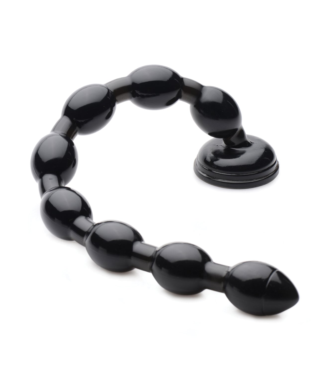 Suction down the base of these sleek, extra-long anal beads and prepare to test your limits! With over an inch and a half of girth, you will feel stuffed after inserting the first smooth, tapered bulb. But the more the merrier, as they say! Feed each of the eight swells of this flexible tool into your orifice until you are at maximum capacity. The phthalate-free material is compatible with water-based and silicone lubricants and cleans off after use with mild soap and warm water.