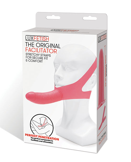 Orgasms are within reach with The Original Facilitator that turns anyone's face into the ultimate penetration station. Featuring two straps that wrap around the head and at the base of the neck, The Original Facilitator features a curved dildo that sits on the wearer's chin, leaving their mouth available for giving oral pleasure. This unisex device is perfect for all fans of kinky play and oral stimulation, and its sleek look and portable size makes it easy to store and travel with. Made of body-safe, easy to clean material, this accessory is a must for adventurous couples.