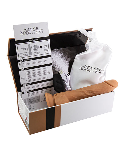 Naked Addiction Vibrating Dildo | 9" Big Dildo | Thrusting Remote Caramel Suction Cup Dildo