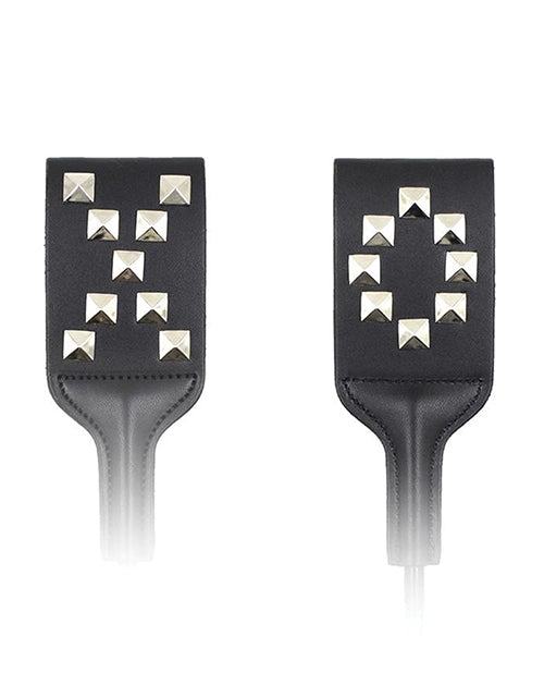Hugs & Kisses - this playful crop has a metal studded "X" on one side and a metal studded "O" on the other. Light and easy to wield, this crop will add a delicious textural sensation to your impact play.