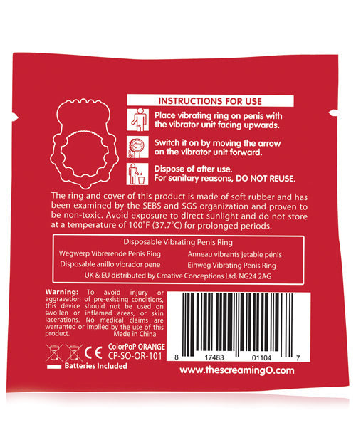 The Screaming O Vibrating Ring is the award-winning sex secret that helps couples have better, more satisfying sex! With pleasure knobs for him and ticklers for her, couples enjoy mutual stimulation with vibration that buzzes throughout the entire ring. Now available as a convenient ColorPoP Quickie, couples can enjoy vibrant vibration at home or on the go with a disposable design they can take anywhere!