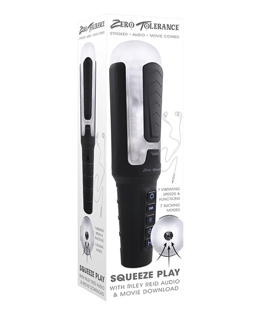 Put the squeeze on your play time with the powerful stroker that not only sucks and vibrates - but also lets you squeeze whenever you want with ergonomic squeeze grips! The seven-speed suction and vibration feel so good, especially with the super-soft and stretchy sleeve that's made from powdered TPE to slip and slide with ease. Let your fantasies run wild as this toy comes with an erotic Riley Reid audio for inspiration - with earbuds so you can hear her up close and personal! You'll also get a free movie download for a sensational visual experience! The case comes apart for easy cleaning, including an evacuation tube to make sure it's ready for your next ‘squeeze play!